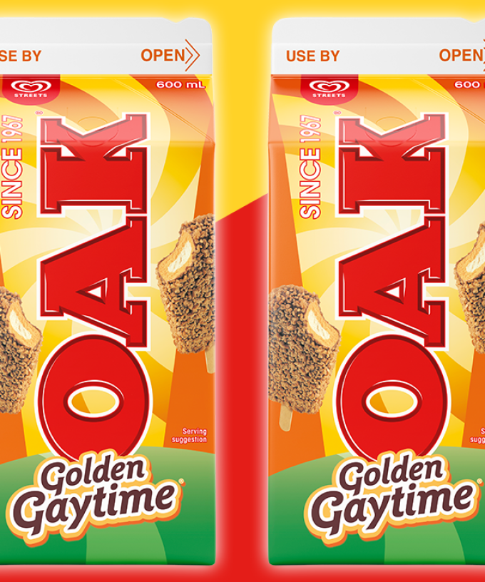 Joining forces with Streets Golden Gaytime, OAK is releasing a delicious flavour hit of golden toffee goodness, creamy vanilla, and biscuit crumb.